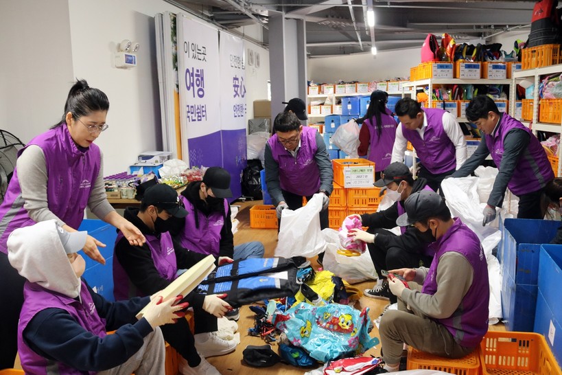 ▲ 강원랜드 봉사단이 유실물 기부를 위한 선별 작업을 실시 하고 있다. (사진=강원랜드) |
