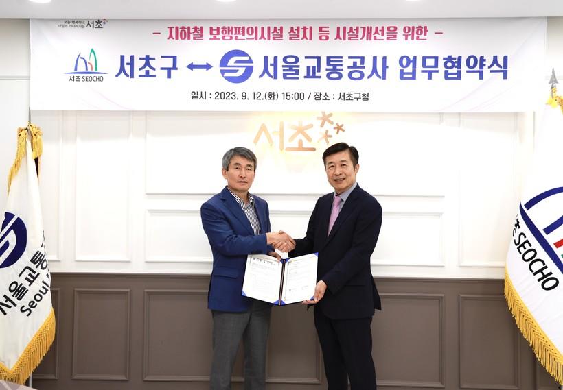 서초구청에서 열린 이번 협약식에는 백호 서울교통공사 사장, 전성수 서초구청장, 서울교통공사와 서초구청 관계자 등이 참석했다.