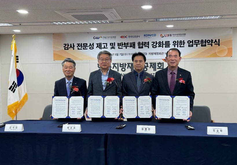 [일요주간=김영란 기자] 한국조폐공사(사장 성창훈, www.komsco.com)는 7일 지방재정회관(서울)에서 한국지방재정공제회, 건설근로자공제회, 한국도로공사와 함께 ‘감사 전문성 제고 및 반부패 협력 강화 협약’을 체결했다.