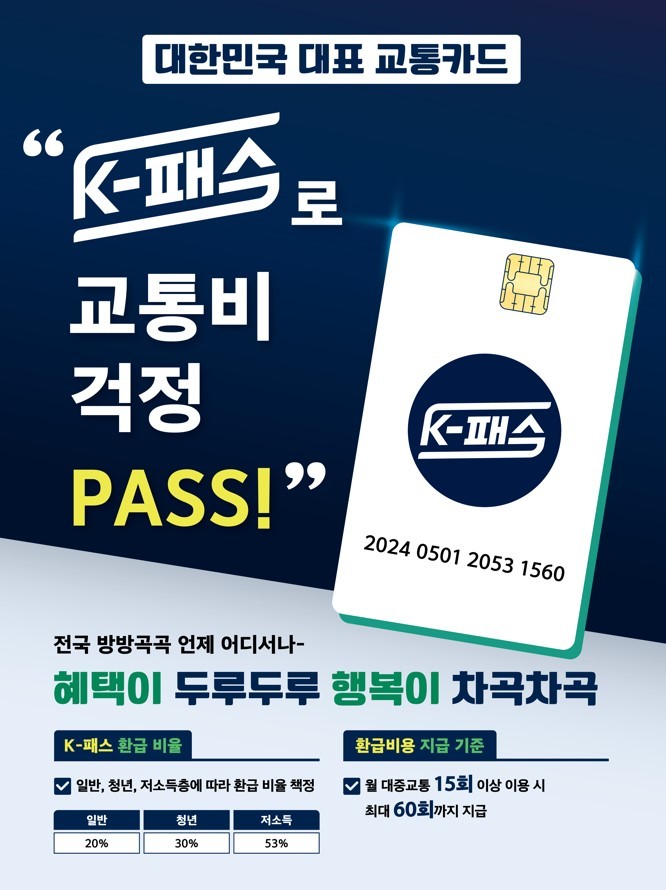 케이-패스는 기존 ‘알뜰교통카드’를 대체한 사업이다. 시내버스, 지하철, 광역버스 등 대중교통을 월 15회 이상 이용하면 최대 60회까지 일반 20%, 청년층(19~34세) 30%, 저소득층 53%의 교통비를 이동거리와 무관하게 다음달 돌려받을 수 있다.