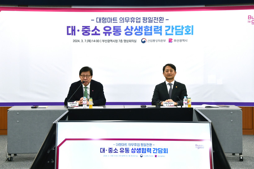 [일요주간=김영란 기자] 부산시(시장 박형준)는 오늘(7일) 오후 2시 시청 영상회의실에서 산업통상자원부(장관 안덕근, 이하 산업부)와 대·중소유통 상생협력 간담회를 개최했다고 밝혔다.