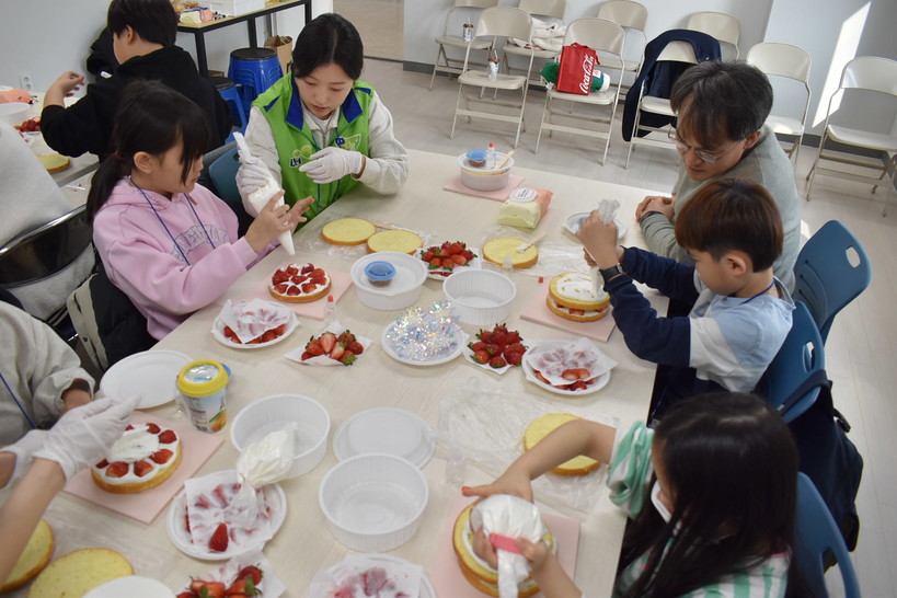▲ LH 나눔봉사단과 인천지역 임대주택 어린이들이 설명절을 맞아 케이크를 만들고 있다. (사진=LH) |