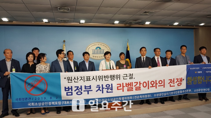 이와 관련, 국회소상공인포럼 대표 서영교의원(더불어민주당·서울중랑구갑)과 소상공인살리기 범국민운동추진본부는 이날 산업통상자원부, 중소벤처기업부, 경찰청, 관세청, 서울시 등 5개 부처 합동의 원산지표시제도 위반 특별단속 조치에 대해 환영하는 기자회견을 가졌다.