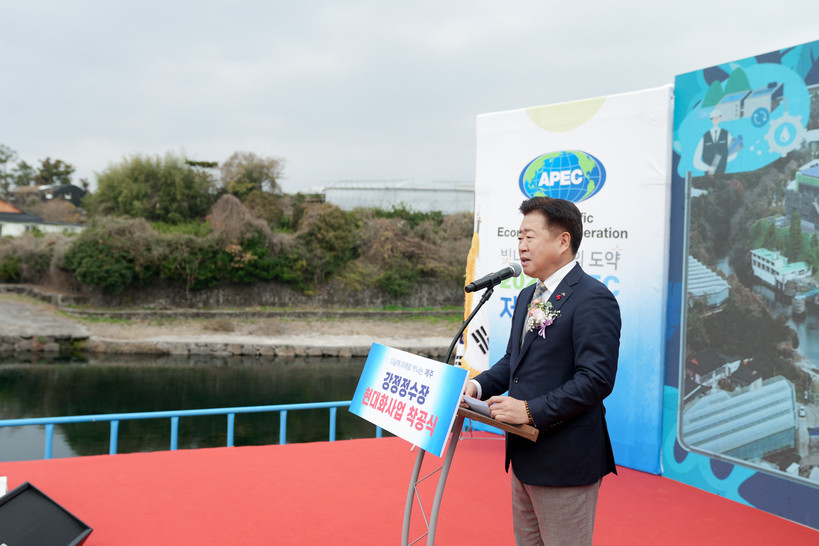 오영훈 지사는 “강정정수장이 인공지능 기반의 최첨단 정수장이 되면 대한민국에서 가장 깨끗한 수돗물을 공급하게 될 것”이라며 “최신공법으로 건설이 이뤄지는 만큼 성심성의껏 시공해달라”고 당부했다.