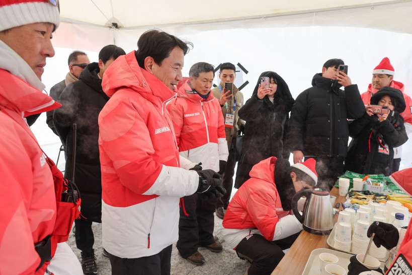 [일요주간=김영란 기자] 22일부터 기온 급강하로 도내 전역에 한파특보가 발령되고 체감온도가 영하 20도까지 내려감에 따라 김진태 강원특별자치도지사가 23일 오후 2024 강원동계청소년 올림픽 설상경기가 운영되고 있는 횡성 웰리휠리파크 내 한파쉼터를 점검했다.