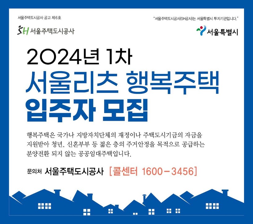 [일요주간=김영란 기자] 서울주택도시공사(SH공사, 사장 김헌동)는 서울리츠 행복주택 304세대의 입주자를 모집한다고 25일 밝혔다. 입주자 모집공고문은 26일 14시 SH공사 누리집(홈페이지)에 게시된다.