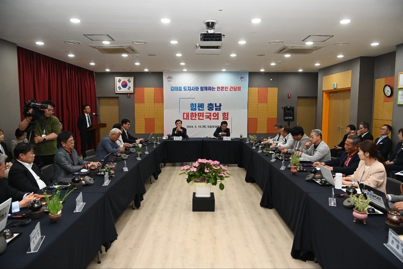 김 지사는 16일 민선8기 3년차 시군 방문 두 번째 일정으로 부여군을 방문, 부여박물관 사비마루에서 언론인 간담회를 가졌다.