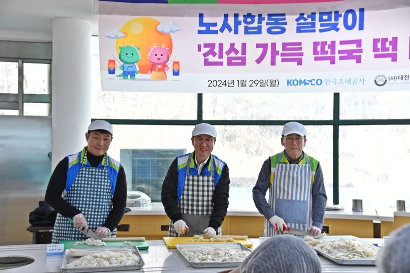 [일요주간=김영란 기자] 한국조폐공사(사장 성창훈, www.komsco.com)는 29일 대전광역시자원봉사센터와 함께 본사 구내식당에서 지역사회 소외계층을 위한 '설 맞이 진심 가득 떡국 떡 나눔 행사' 를 개최했다.