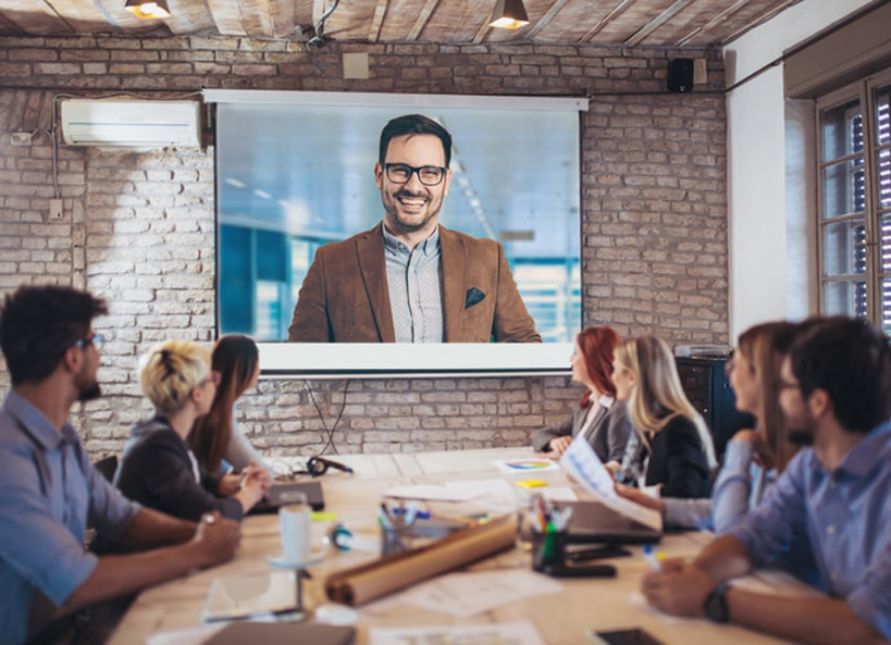 | ▲소니 초소형 3LCD 레이저 프로젝터를 활용한 화상회의 장면 (사진=SONY) |