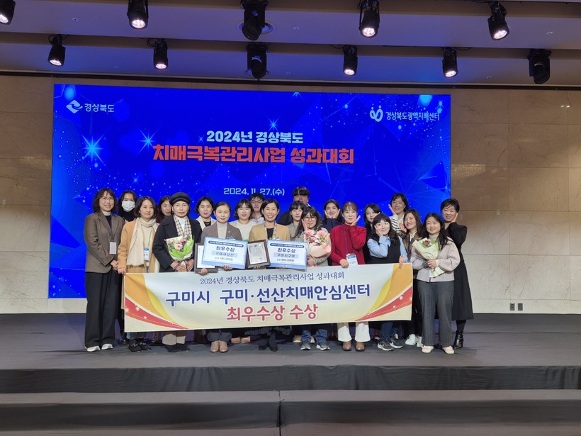 [일요주간=최부건 기자] 구미시는 지난 27일 안동 스탠포드 호텔에서 열린 「2024년 경상북도 치매극복관리사업 성과대회」에서 구미치매안심센터와 선산치매안심센터가 나란히 ‘최우수상’을 수상하는 쾌거를 이뤘다.