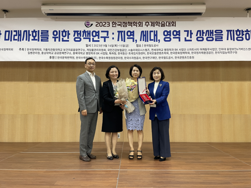 ▲ 15일, 한국철도공사에서 개최된 「제2회 한국 ESG 혁신정책 대상」 시상식에서 이미애 한국공항공사 부사장(왼쪽부터 3번째)이 지배구조 부문 최우수상을 수상하고 기념촬영을 하고 있다. (사진=한국공항공사) |