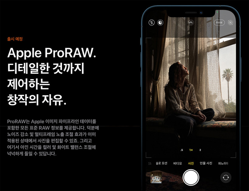 | ▲애플 ProRAW에 대한 공식홈 예고 (이미지 편집=애플) |