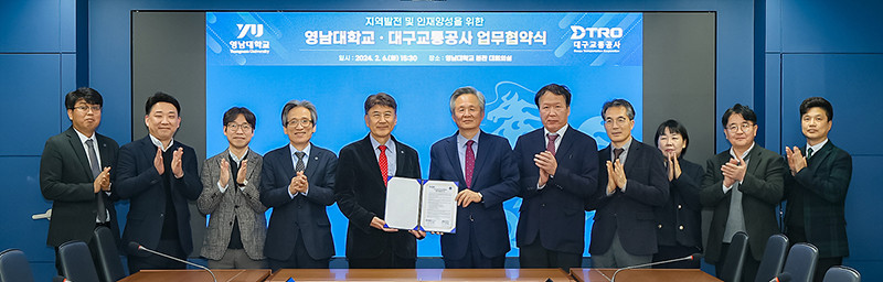 [일요주간=김영란 기자] 대구교통공사는 지난 6일 영남대학교에서 김기혁 사장, 영남대학교 최외출 총장 등 양 기관 대표들이 참석한 가운데 ‘지역발전 및 인재 양성을 위한 업무협약’을 체결했다.
