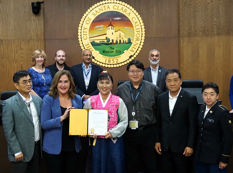 [일요주간/샌프란시스코=정승덕 기자] 10월 10일 저녁 7시에 산타클라라 시 (시장 리사 길모어) 시의회 회의장에서 리사 길모어 시장과 케빈 박 부시장 그리고 시의회 의원들과 산타클라라 시민들이 참석한 가운데 '한글날' 선포문 수여식이 개최되었다.