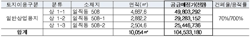 - 광명시흥사업본부 사옥부지(상업용지, 10천㎡, 1,045억원)에 9.7일에 입찰 마감
