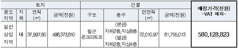 지난해 10월 매각을 추진했으나 유찰된 바 있다. 자세한 공고문은 온비드(www.onbid.co.kr)에서 확인할 수 있다.