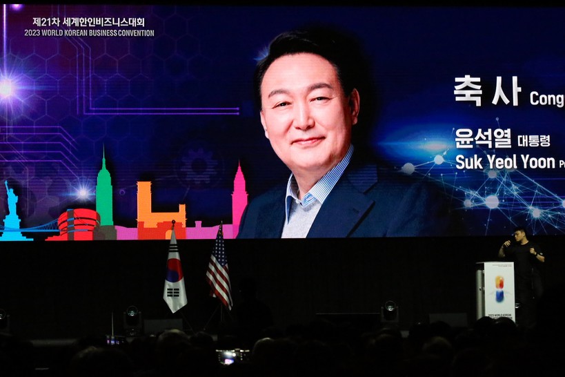 재외동포청기와 총연기가 입장한 뒤 윤석열 대통령의 축사가 대독 되었고, 이기철 재외동포청장의 개회사, 김진표 국회의장의 영상 축사, 개빈 뉴섬 캘리포니아 주지사의 영상 축사, 하기환 대회장, 황병구 조직위원장 등 8명의 대회사, 장대화 매경미디어그룹회장의 환영사, 김기문 중소기업 회장의 기조연설과 축하 공연으로 이어졌다.
