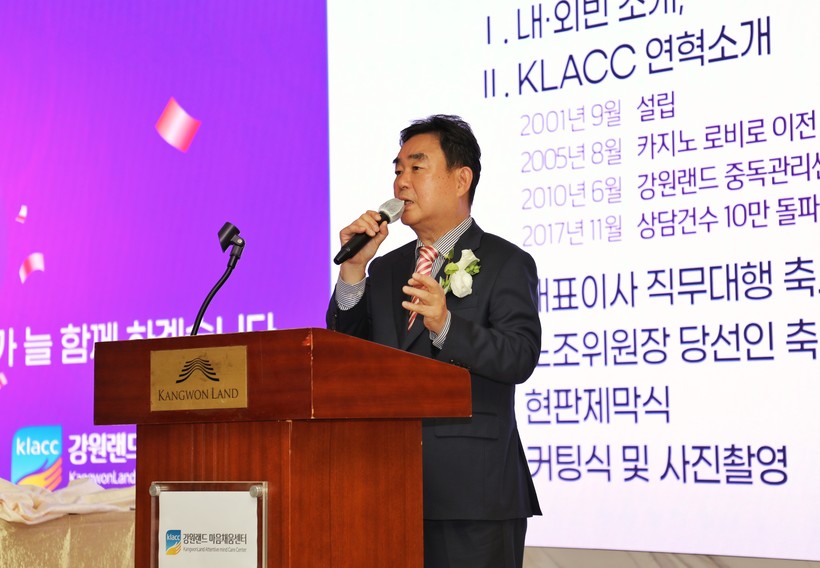 ▲ KLACC 현판식에서 최철규 대표이사 직무대행이 인사말을 하고 있다. (사진=강원랜드)