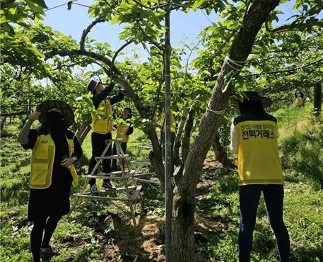 [일요주간=김영란 기자] 전력거래소(이사장 정동희)는 8일 농번기를 맞이해 나주시 부덕금계길 소재 농가 배 솎기를 지원하는 봉사활동을 실시하였다.
