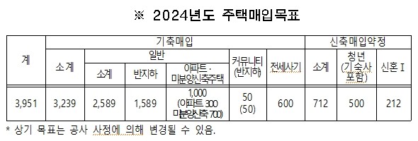 ▲ 2024년도 주택매입목표(표=SH공사) |