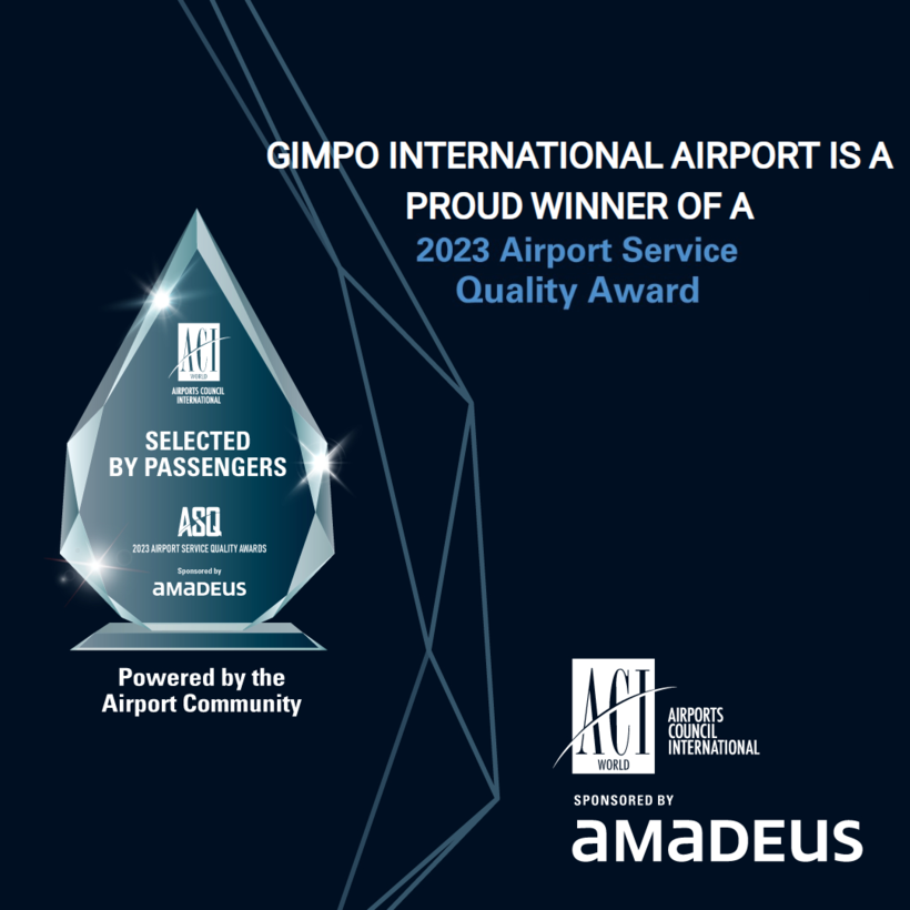 국제공항협회(ACI : Airports Council International)가 주관하는 ASQ는 공항이용객을 대상으로 서비스 분야별 만족도를 측정하는 조사로, 김포공항은 평가에 참여한 338개 공항 중 아태지역 중대규모 공항군(공항이용객 25-40백만명)에서 우수공항(Best Airport) 수상의 영예를 안았다.