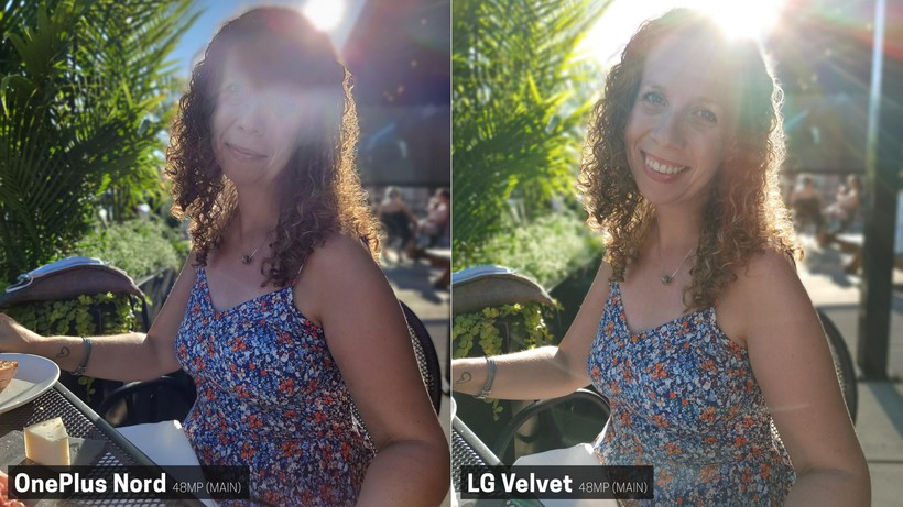 ▲ 원플러스 노드와 LG벨벳의 역광 인물사진 비교 (사진 =판드로이드) |