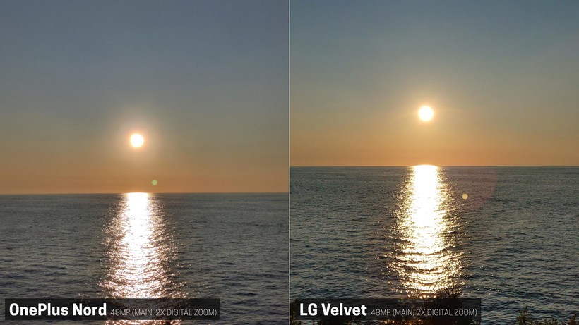 ▲ 원플러스 노드와 LG벨벳의 석양 사진 비교 (사진 =판드로이드) |
