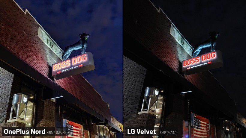 ▲ 원플러스 노드와 LG벨벳의 야간 사진 비교 (사진 =판드로이드) |