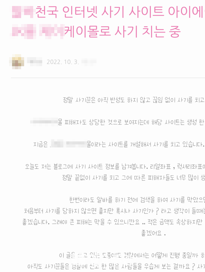 사기꾼들은 맘카페와 OO천국 등에 상품 주문과 주문 확인만 하면 되는 간단한 업무로 수익을 낼 수 있다는 모집 공고를 올리고 피해자들을 물색했다.