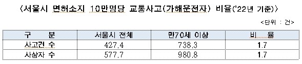 ▲ 서울시 면허소지 10만명당 교통사고(가해운전자) (표=서울시) |