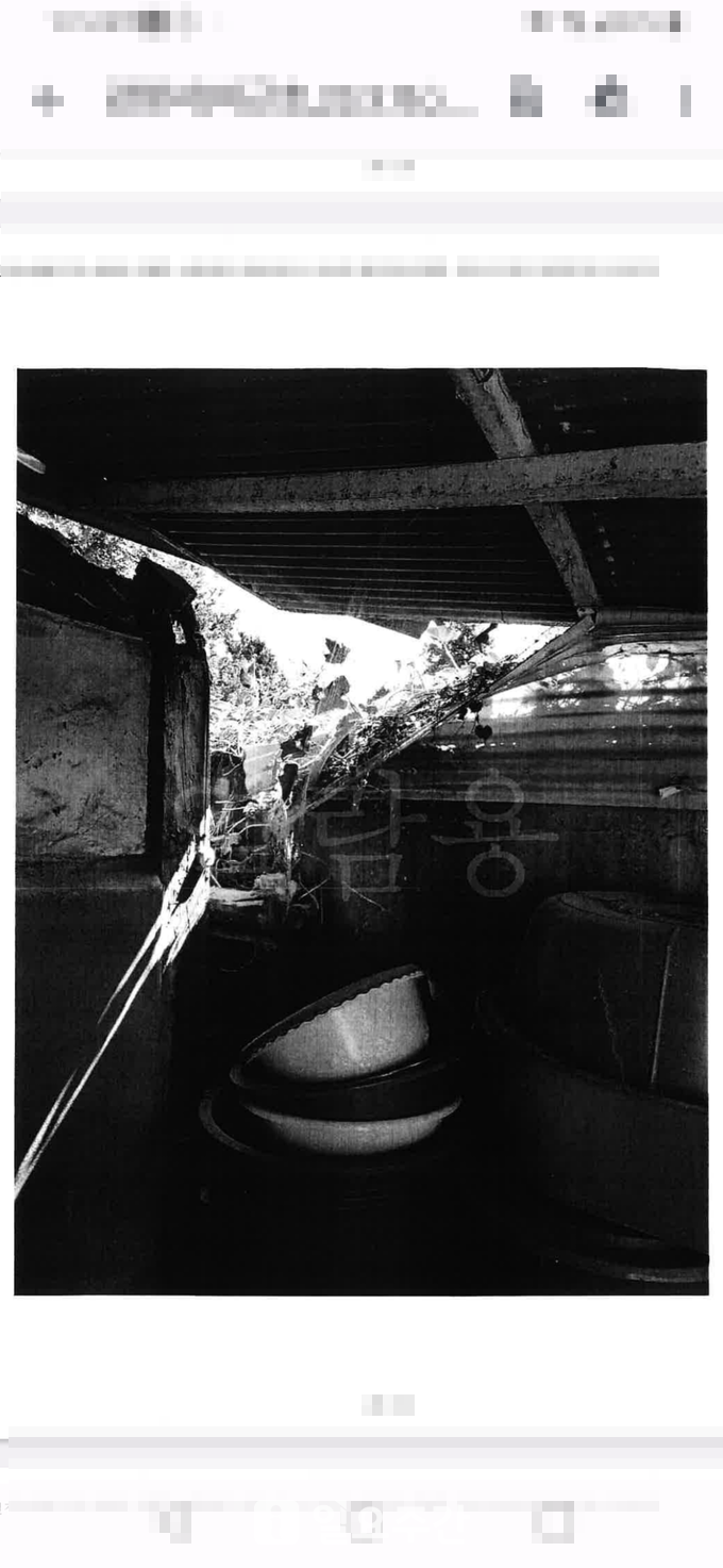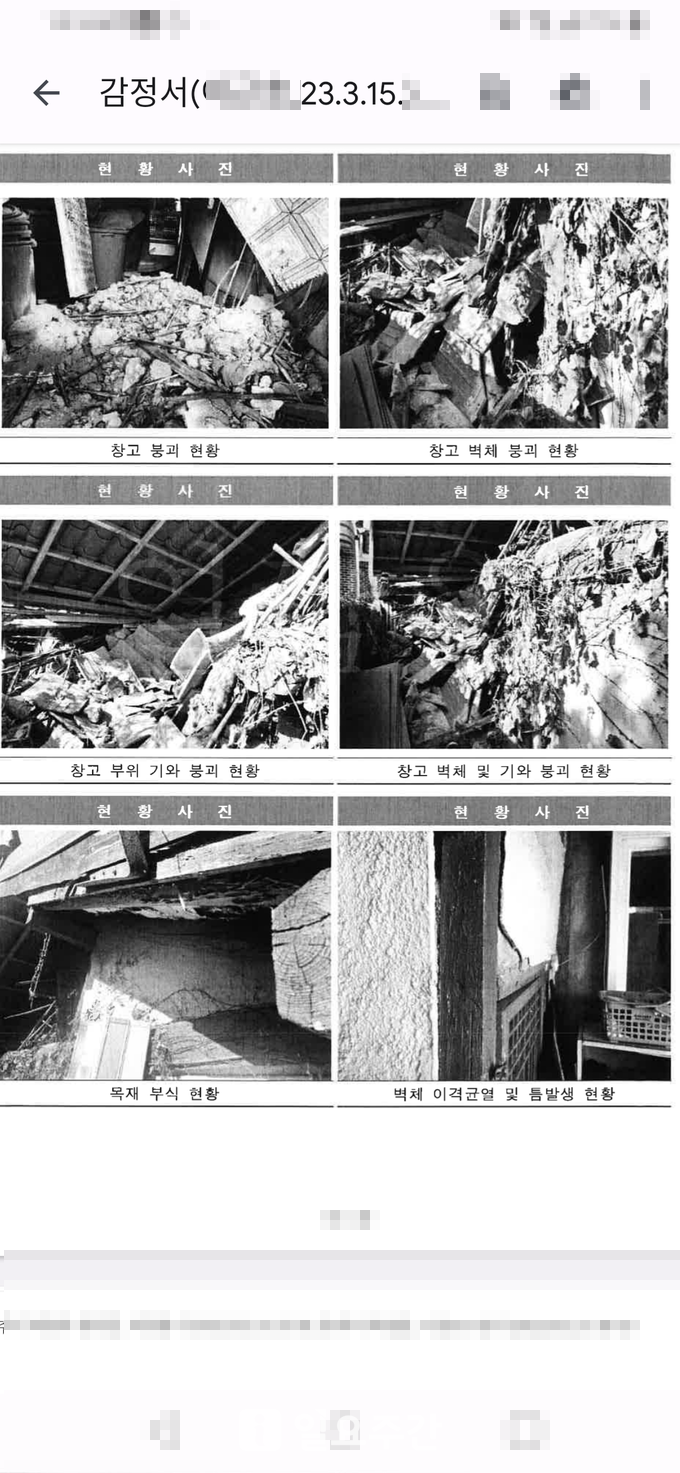 ▲감정서에 첨부된 주택 창고 붕괸 사진.(사진=제보자 제공) |