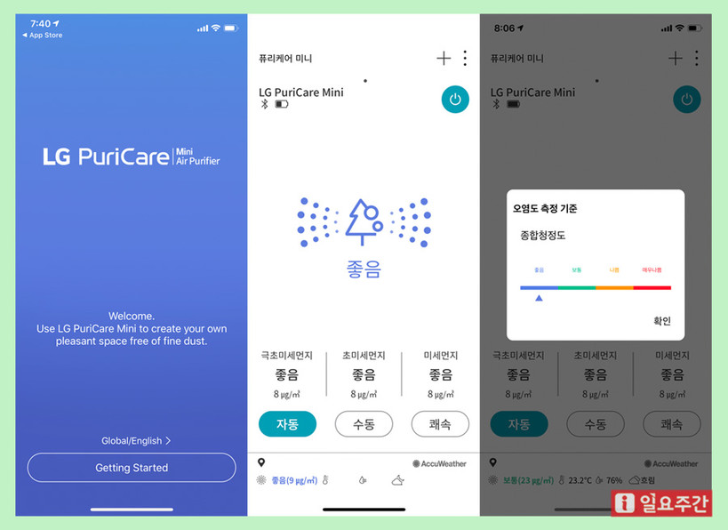 ▲앱 'LG 퓨리케어 미니' 화면 (이미지 편집=일요주간) |