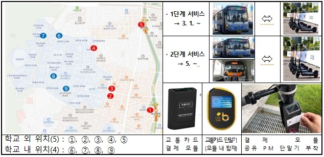 - 부산대, 도시철도 부산대역, 장전역 등 금정구 일원을 대상으로 최대 200대의 PM 시범 운영