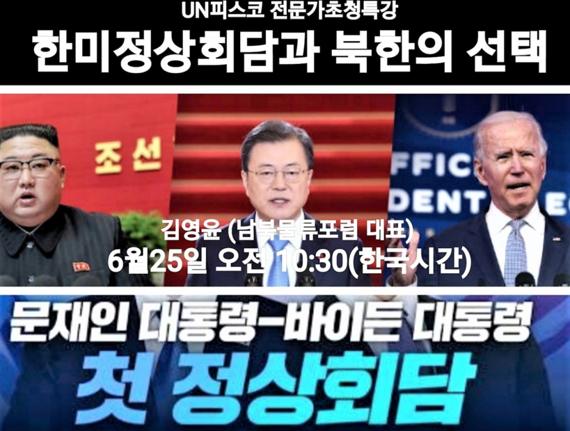 한미정상회담 후의 남북한 관계 북미간의 대화 가능성 여부를 알아보고, 문재인-바이든 한미정상회담 이후의 한미 관계를 비롯해 북한의 선택, 북의 혁명통일론 삭제, 제1비서직 신설 등의 다양한 북의 상황에 예의 주시하고, 앞으로 한반도 정세를 전망할 예정이다.