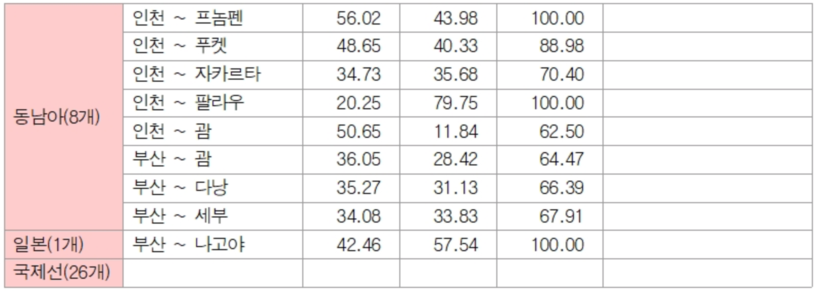 | ▲여객노선 슬롯 반납 대상 노선.(2019, 국제선은 직항 왕복편 기준) |