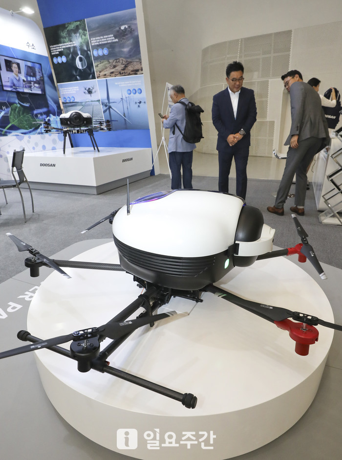 | ▲ 지난 19일 서울 중구 동대문디자인플라자에서 열린 '2019 대한민국 수소엑스포'를 찾은 관람객들이 수소파워팩을 이용한 드론을 살펴보고 있는 모습. |