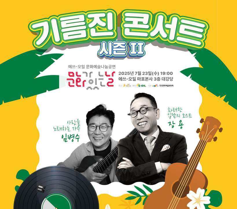 [일요주간 = 엄지영 기자] S-OIL(대표 안와르 알 히즈아지)이 마포 지역 주민들을 위한 문화예술 나눔활동의 일환으로 오는 23일 ‘기름진 콘서트 시즌2’를 개최한다. 이번 공연은 웃음과 음악이 어우러진 토크콘서트 형식으로 진행된다.