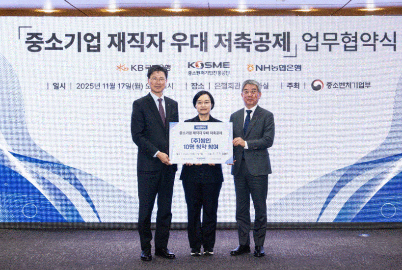 [일요주간 = 김완재 기자] NH농협은행(은행장 강태영)이 중소벤처기업부(중기부)·중소벤처기업진흥공단(중진공)과 업무협약을 체결, 중소기업 재직자의 자산 형성을 지원하는 우대 저축공제 사업에 신규 참여하며 중소기업 성장 지원을 강화한다.