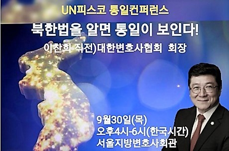 이번 강연은 이찬희 전 대한변호사협회장이 “북한법을 알면 통일이 보인다”라는 제목으로 법조인이 보는 북한의 법을 일목요연하게 설명할 것이라고 허준혁 사무총장이 전했다.