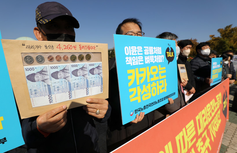 이른바 ‘카카오 먹통사태’로 피해를 입은 대리기사들이 현실성 있는 피해 보상을 촉구했다.