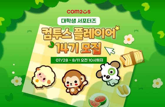 [일요주간 = 하수은 기자] 컴투스(대표 남재관)가 게임 및 콘텐츠 제작에 관심 있는 대학생을 대상으로 영상, 디자인 등 다양한 분야의 콘텐츠를 직접 기획하고 제작하는 서포터즈 프로그램 '컴투스 플레이어' 14기 참가자를 모집한다.