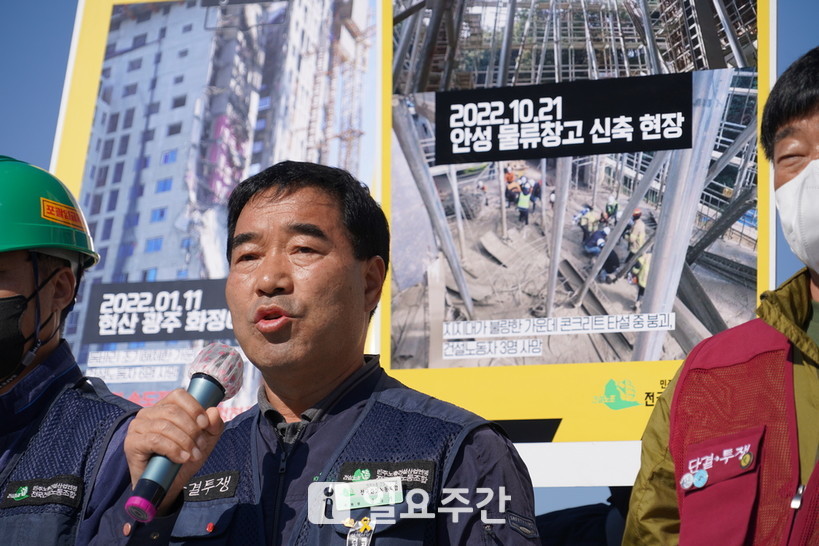 사고를 당한 노동자들과 같은 일을 하는 민선기 경기중서부건설지부 타설노동자는 “수많은 사고를 겼어봤지만 사고 원인 중 90%는 데크플레이트 공법으로 인해 발생됐다”고 밝혔다.