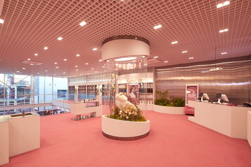 공간면적 총 450㎡(약 136평) 규모를 갖춘 ‘메디큐브 성수’는 메디큐브가 지향하는 브랜드 정체성이 시각적으로 표현된 것이 특징이다. 매장 내부는 ‘핑크 페어리(요정)’라는 콘셉트 아래 핑크 톤과 화이트 톤, 메탈 소재 등을 조합한 인테리어로 신비로우면서도 고급스러운 분위기를 조성했다.