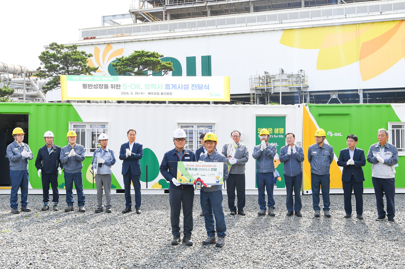 [일요주간 = 조무정 기자] S-OIL은 26일 온산공장에서 고용노동부와 안전보건공단이 주관하는 상생협력사업과 S-OIL ESG 경영실천을 위해 ‘S-OIL 협력사 휴게시설 전달식’을 열고 협력사 근로자들을 위한 휴게시설을 지원했다.