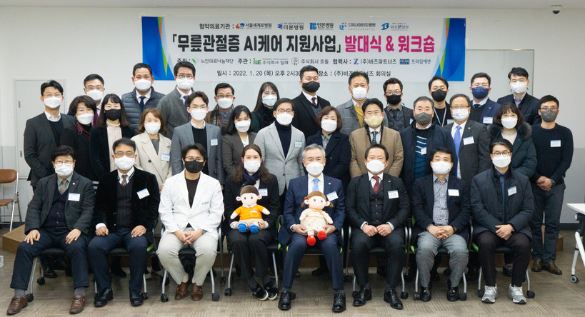 [일요주간 = 소정현 기자] 노인의료나눔재단(이사장 김성환)은 지난 1월 20일, 서울 구로구 비즈파트너즈 대회의실에서 무릎관절증 인공지능(AI)케어 지원사업을 위한 (주)일레, (주)효돌, 협약의료기관 등의 협력사 관계자들이 참석해 발대식을 가졌다.