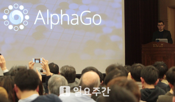 | ▲지난 2016년 이세돌 9단과 세기의 바둑 대결을 펼쳐 승리한 인공지능 바둑 프로그램 '알파고(AlphaGo). 사진은 알파고를 개발한 구글 딥마인드의 창업자 겸 최고경영자(CEO) 데미스 하사비스가 한국과학기술원(KAIST)에서 특별 강연을 하고 있는 모습. |