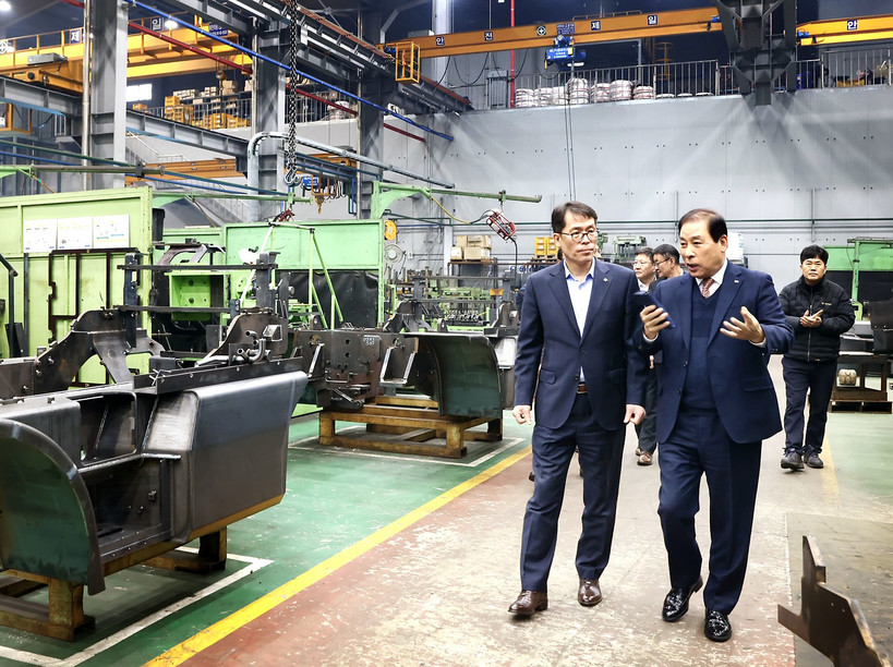 | ▲IBK기업은행 김성태 은행장이 인천지역 남동국가산업단지에 소재한 중장비차량 부품 제조업체 우진이엔지를 방문해 기업경영 현장의견을 청취했다.(사진=IBK기업은행 제공) |