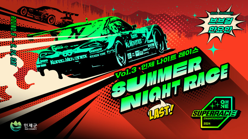 [일요주간 = 노현주 기자] 올 시즌 ‘마지막’ 썸머 시즌(SUMMER SEASON)이 강원도 인제군에서 열린다. CJ대한통운이 후원하는 2024 오네(O-NE) 슈퍼레이스 챔피언십 6라운드 인제 나이트 레이스가 오는 24일 인제 스피디움에서 썸머 시즌의 마지막을 화려하게 장식할 예정이다.