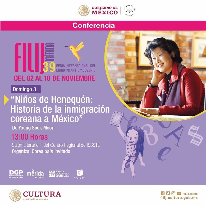 ▲ 문영숙작가는 2019년 12월 2일 오후 1시 ‘멕시코 메리다 도서전’ 강당에서 ‘멕시코 에네껜농장 한국 이민 히스토리’를 특강했다. |
