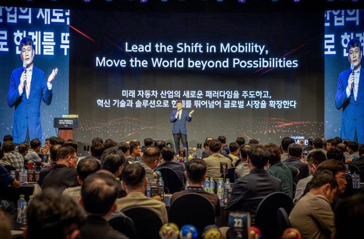 ▲ 현대모비스가 27일 제주 해비치호텔앤리조트에서 '2025 현대모비스 대리점 컨퍼런스'를 개최했다. 이규석 사장(사진 가운데)은 "고객들이 현대차/기아를 선택하는 중요한 이유 중 하나가 바로 우리의 서비스 경쟁력"이라며 A/S 부품 고객 서비스 강화를 강조했다. (사진=현대모비스 제공) |